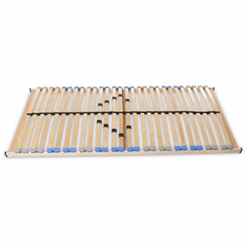 Robuster Lattenrost mit sieben Liegezonen, zur einfachen Selbstmontage, Gesamthöhe ca. 7,5 cm, Made in Germany – Mit 28 mehrfachfurnierten Federholzleisten, gelagert in beweglichen Duo-Kappen aus Kautschuck, Gesund schlafen mit MaDeRa – 5-fache Härteregrad Reulierung im Lendenwirbel- und…